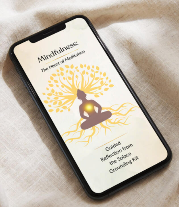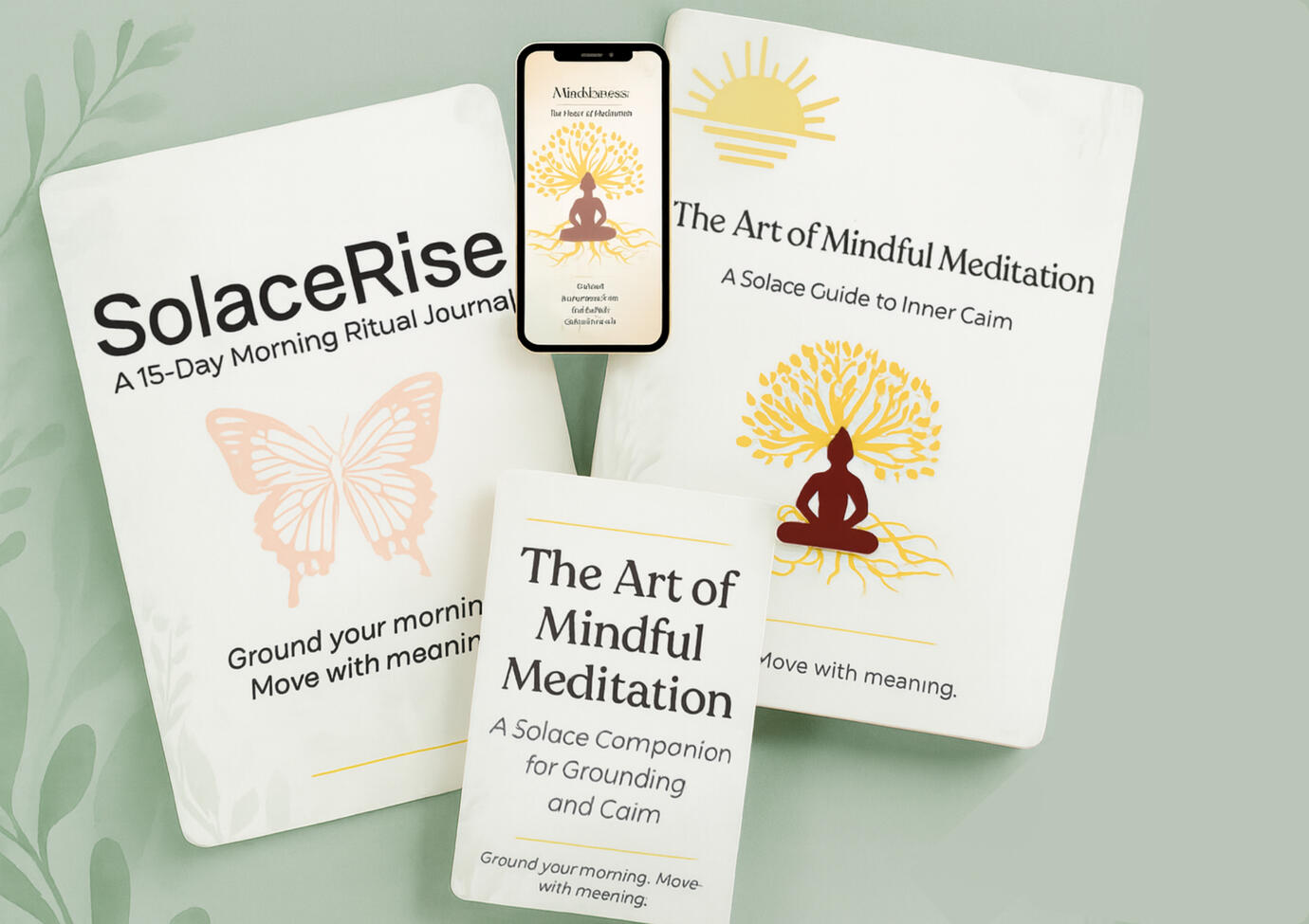The Solace Grounding Kit combines journaling, mindfulness, and gentle reflection — all designed to help you slow down, breathe deeper, and reconnect with your calm