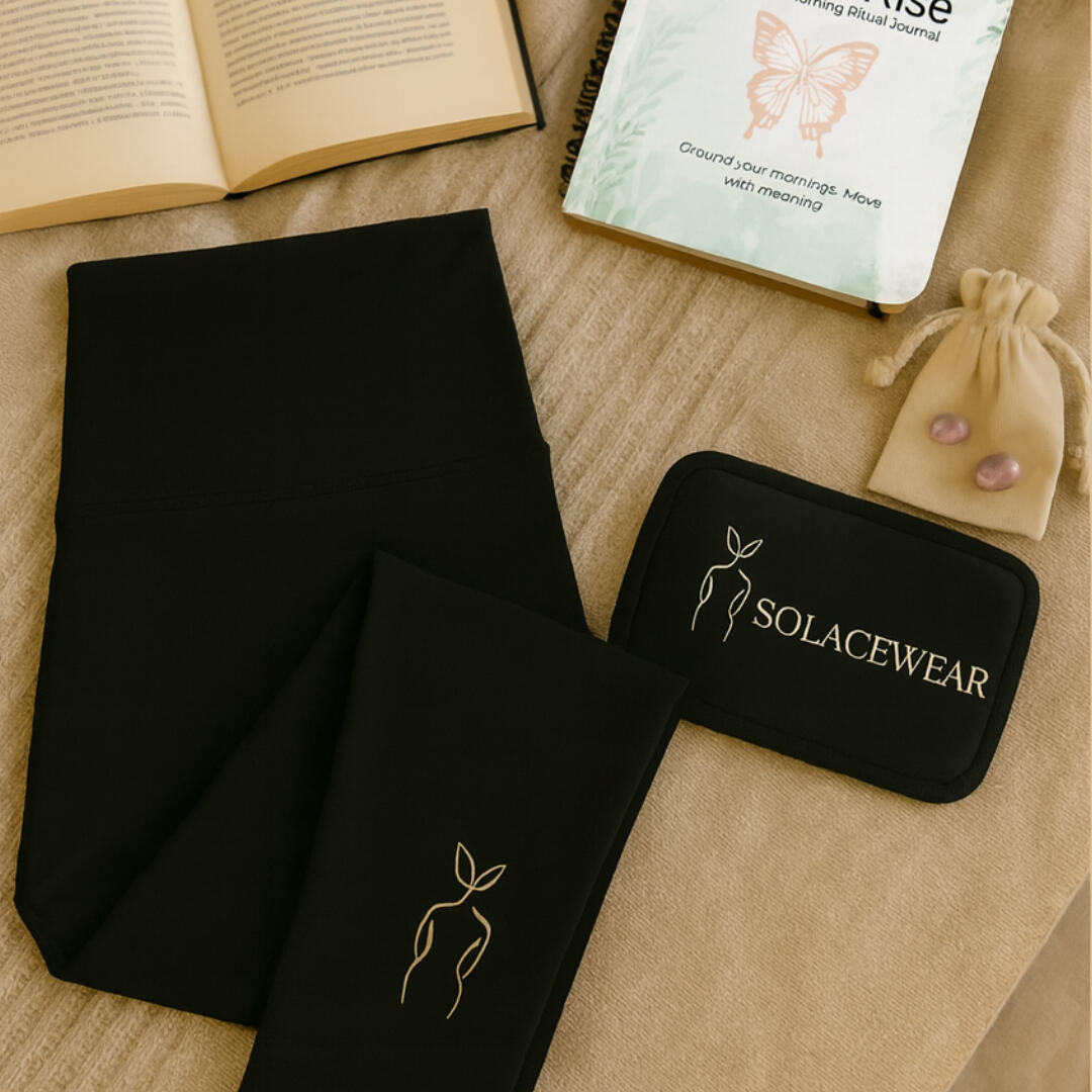 There was a time when my mornings began in chaos — rushing, reacting, reaching for calm that never seemed to last.I created SolaceWear as a reminder that peace doesn’t come from doing more — it comes from being still enough to feel yourself again.Each ritual, from journaling to mindful breathwork, became a small act of returning home to myself. And from that, SolaceWear was born — a line of wearable and intentional tools to help other women do the same.Every detail, from the magnetic tights to the morning journal, is crafted to help you reconnect with your rhythm — to remind you that calm is not a luxury, it’s your birthright.SolaceWear is more than a brand.